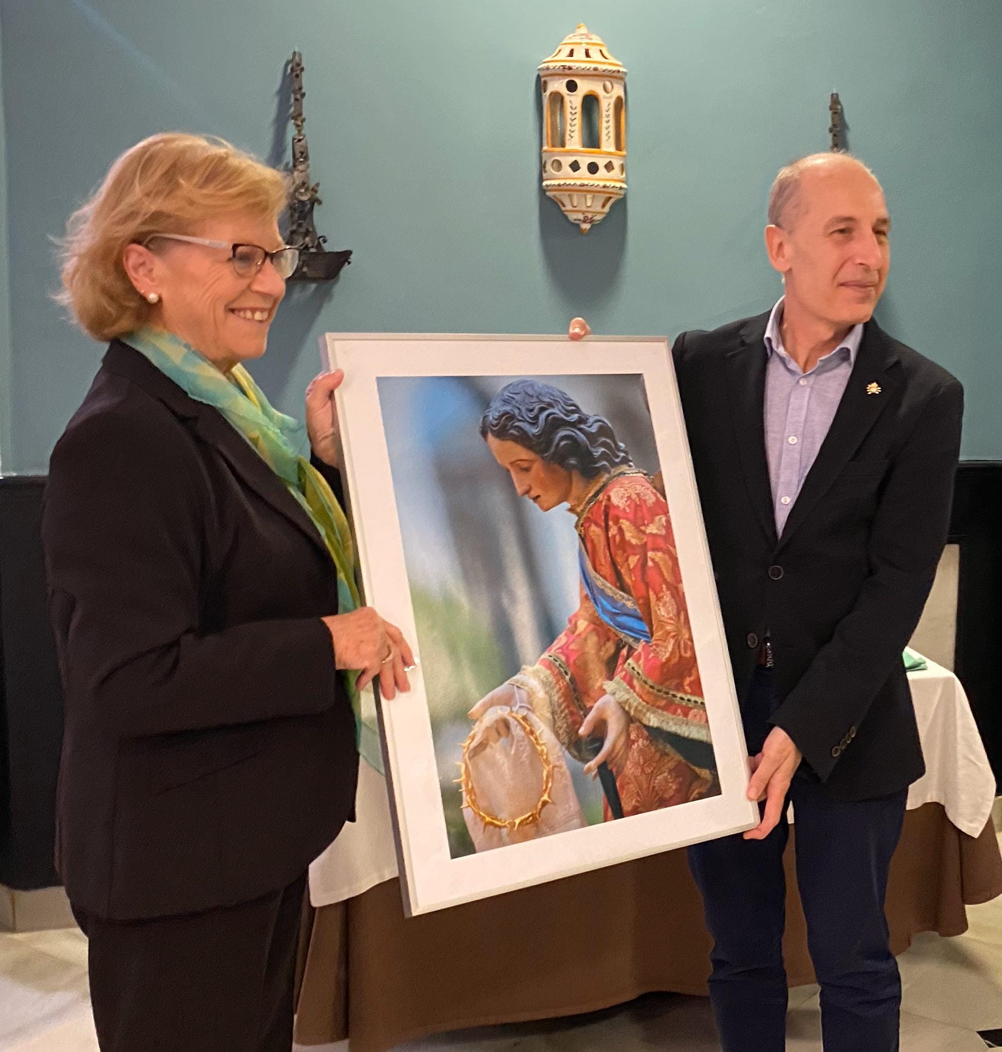 Como recuerdo del año en que nos ha representado como Nazareno de Honor del Real y Muy Ilustre Cabildo Superior de CofradÃas, por la CofradÃa de Servitas, entregó un recuerdo al cofrade mayordomo Enrique Manuel Cárceles Manzanares, pasando, a continuación, a otorgar las distinciones aprobadas por la Junta de Gobierno para 2019, que recayeron en Julián MartÃnez MartÃnez, Estante Distinguido del Paso del Santo Ãngel Servita; Luis Manuel Gómez Chumillas, Estante Distinguido del Paso de la Stma. Virgen de las Angustias; y MarÃa López RÃos, Alumbrante de Mantilla Distinguida; para terminar entregando el nombramiento de Servita de Honor a Santiago RodrÃguez López, en agradecimiento por su colaboración en la reciente restauración del trono de la Virgen, ocupándose de los dibujos para el enriquecimiento ornamental del paso.